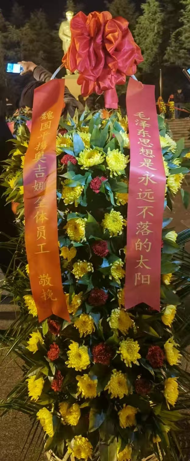 奧吉娜集團(tuán)總裁魏國平博士特選派員工赴韶山?jīng)_,代表奧吉娜集團(tuán)向紀(jì)念毛澤東銅像敬獻(xiàn)花籃祭拜偉人,表達(dá)奧吉娜人對這位偉人最崇高的敬意和最深切的懷念。